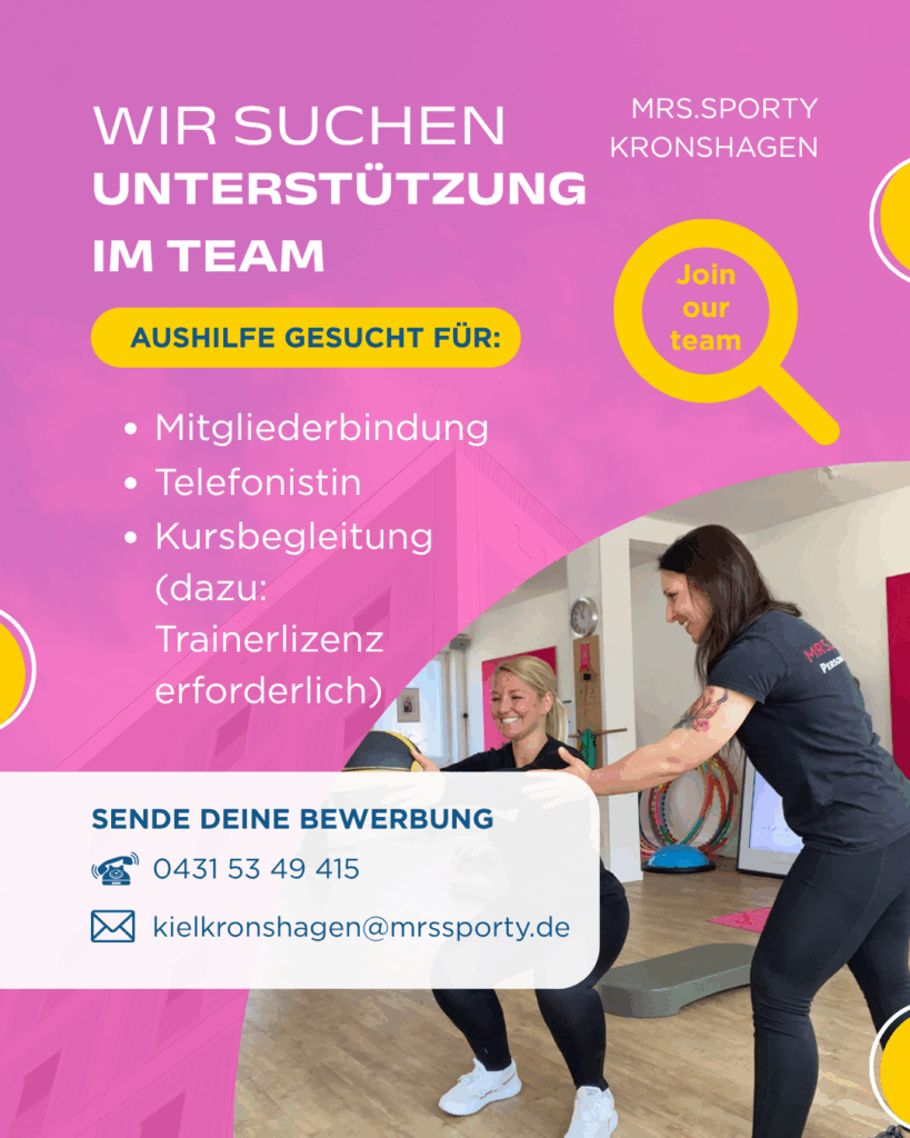 Du willst Teil unserer sympathischen Marke werden und an der Erfolgsgeschichte von MRS.SPORTY mitwirken? Dann sende noch heute Deine vollständigen Bewerbungsunterlagen inkl. Gehaltsvorstellungen und frühestmöglichen Einstiegszeitpunkt.